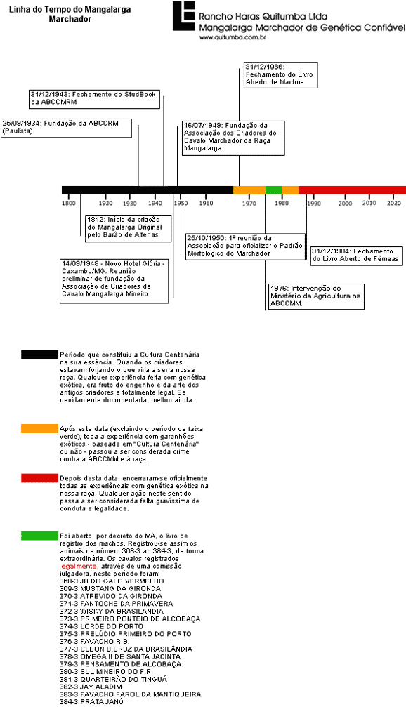Posteriormente, temos notícia da introdução do sangue andaluz-lusitano, já no criatório de outro descendente das Ilhoas, o Barão de Alfenas – Gabriel Francisco Juqnueira, que foi presenteado pelo Imperador com um garanhão vindo da Coudelaria de Alter do Chão, em Portugal. Pela militância política na Corte e acesso às rodas de expressão nacional, o Barão deu grande notoriedade à raça que então começava a se desenvolver.